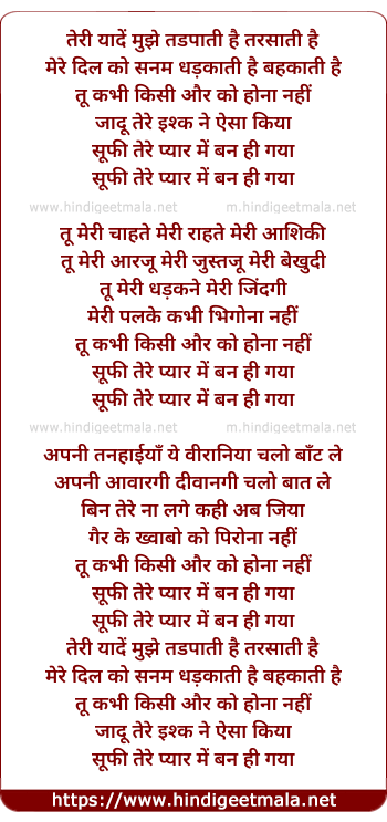 Lyrics of Sufi Tere Pyaar Mein Ban Hi Gaya - सूफी तेरे प्यार में बन ही गया