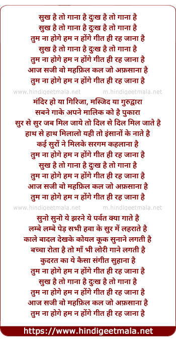 sukh hai to gaanaa hai duhkh hai to gaanaa hai