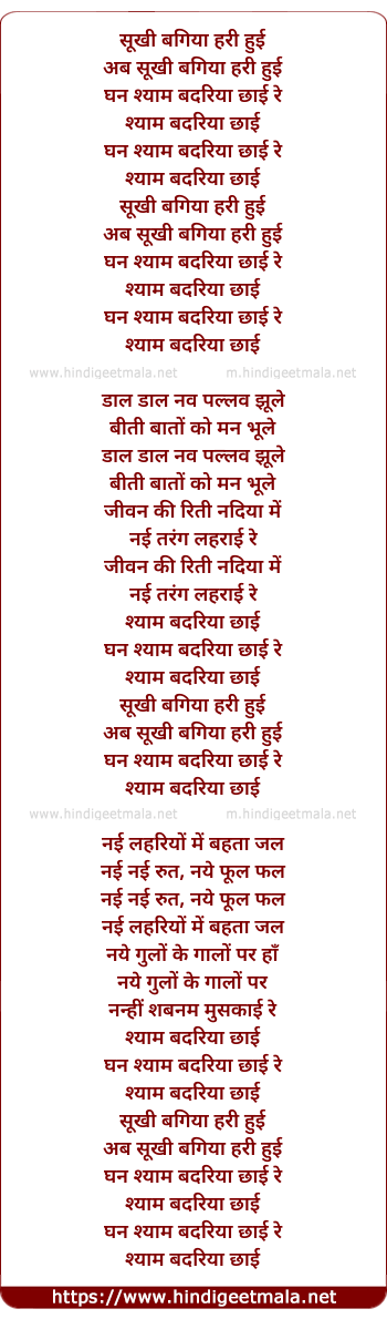 Lyrics of Sukhi Bagiyaa Hari Hui - सूखी बगिया हरी हुई