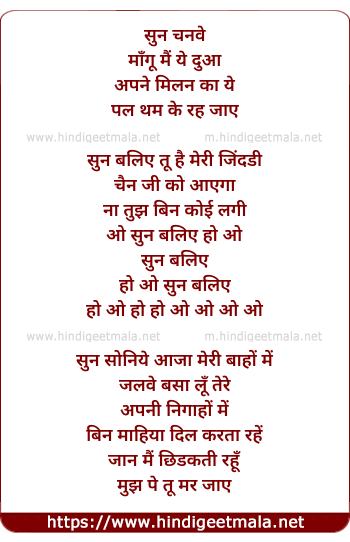 Lyrics of Sun Chanve, Maangu Mai Ye Duaa - सुन चनवे, माँगू मैं ये दुआ