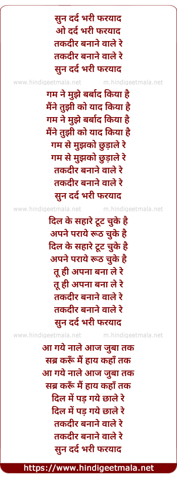 Lyrics of Sun Dard Bhari Faryaad - सुन दर्द भरी फरयाद