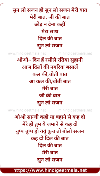 Lyrics of Sun Lo Sajan Meri Baat - सुन लो सजन मेरी बात