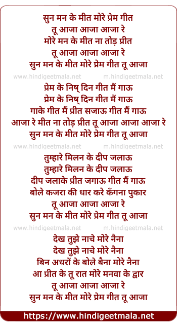 Lyrics of Sun Man Ke Meet More Prem Geet - सुन मन के मीत मोरे प्रेम गीत
