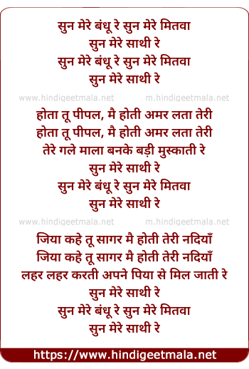 Lyrics of Sun Mere Bandhu Re Sun Mere Mitwa - सुन मेरे बंधू रे सुन मेरे मितवा