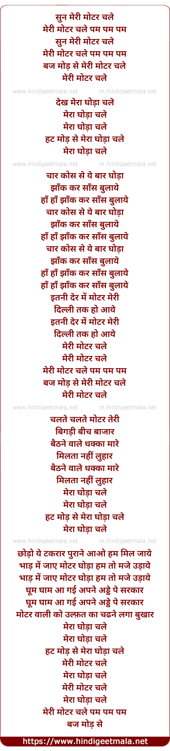 Lyrics of Sun Meri Motor Chale Pam Pam Pam - सुन मेरी मोटर चले