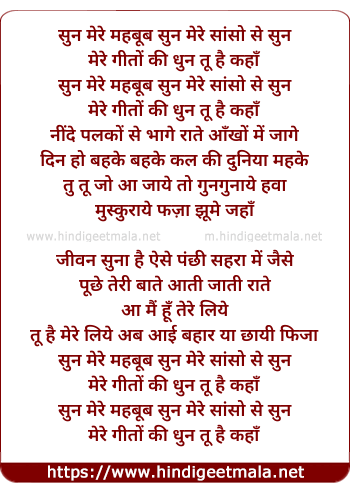 Lyrics of Sun (Nazia Hassan) - सुन मेरे महबूब सुन मेरे सांसो से सुन