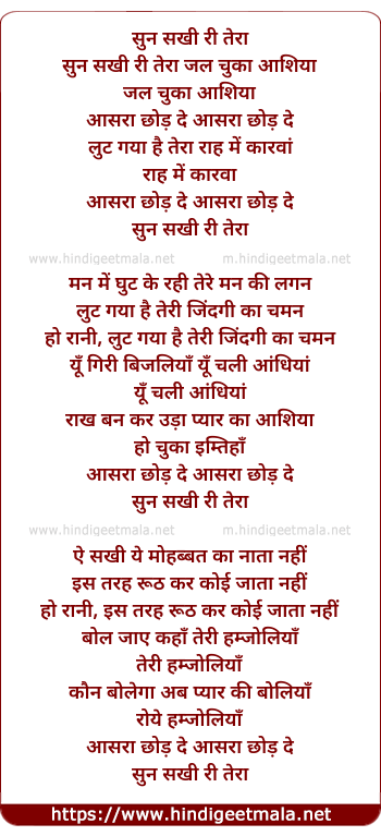 Lyrics of Sun Sakhi Ri Tera Jal Chuka Aashiya - सुन सखी री तेरा जल चुका आशिया