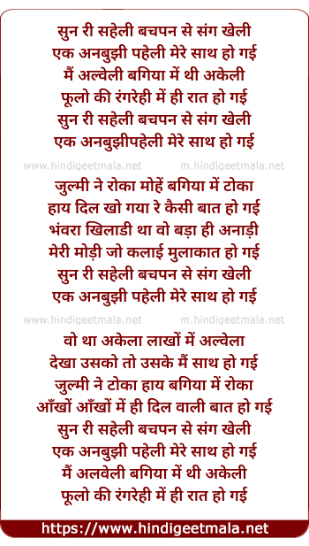 Lyrics of Sun Sun Ri Sahelii - सुन सुन री सहेली