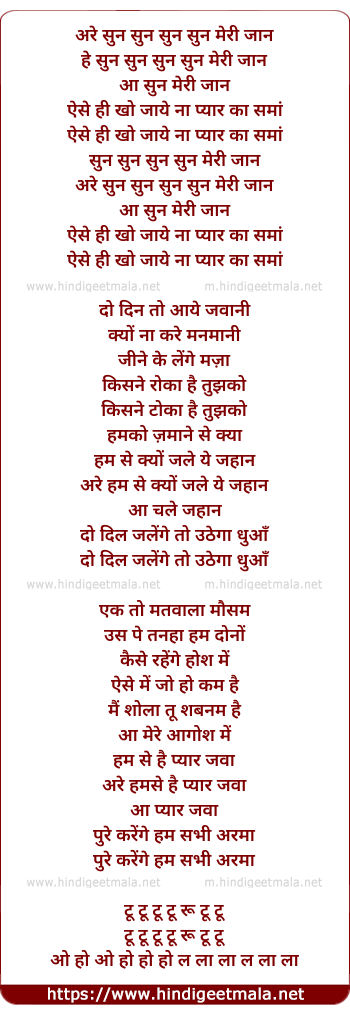 Lyrics of Sun Sun Sun Meri Jaan - सुन सुन सुन मेरी जान