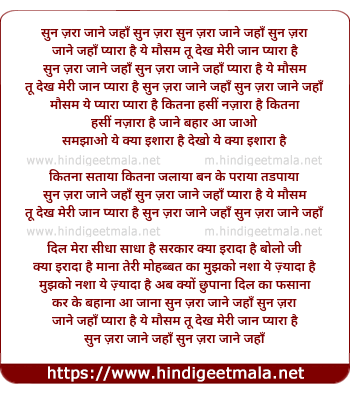 Lyrics of Sun Zara Jane Jaha - सुन ज़रा जाने जहाँ