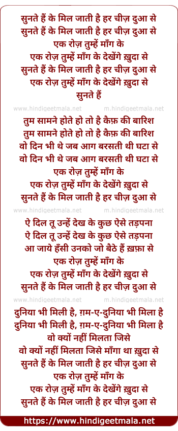 Lyrics of Sunate Hain Ke Mil Jaati Hai Har Chiz Duaa Se - सुनते हैं के मिल जाती है हर चीज़ दुआ से