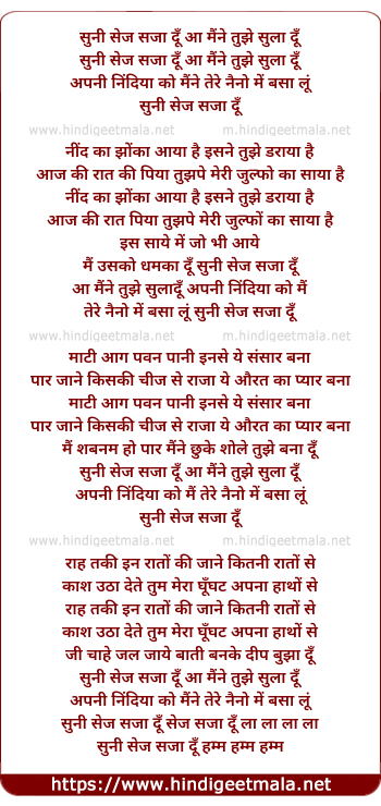 Lyrics of Suni Sej Saja Du - सूनी सेज सजा दूँ