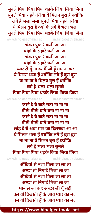 Lyrics of Sunle Piya Dhadke Jiya - सुनले पिया धड़के जिया