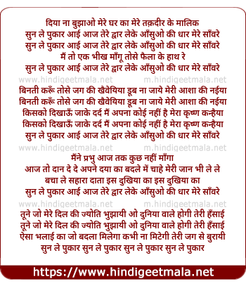 sun le pukar aayi aaj tere dwaar leke aansuo ki dhar mere sanwre