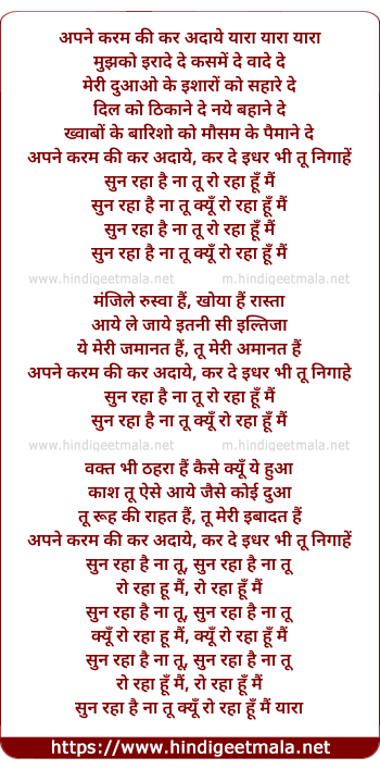 Lyrics of Sun Raha Hai Na Tu Ro Raha Hu Main - सुन रहा है ना तू रो रहा हूँ मैं