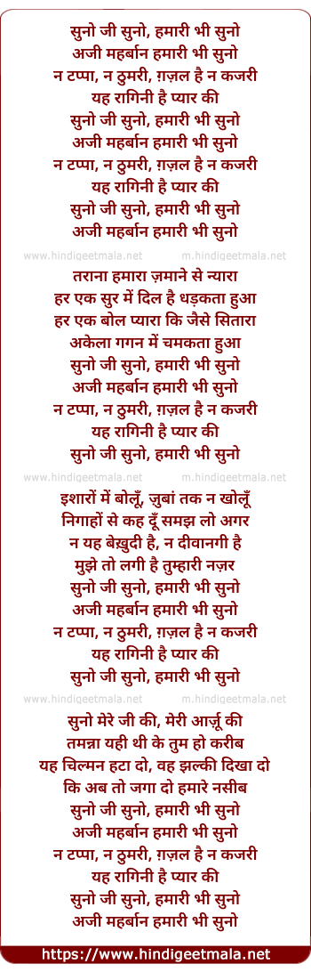Lyrics of Suno Jee Suno Hamaree Bhee Suno - सुनो जी सुनो, हमारी भी सुनो