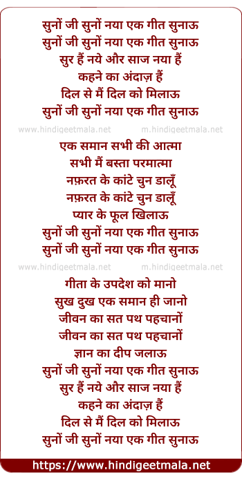 Lyrics of Suno Ji Suno Nayaa Ek Geet - सुनों जी सुनों नया एक गीत