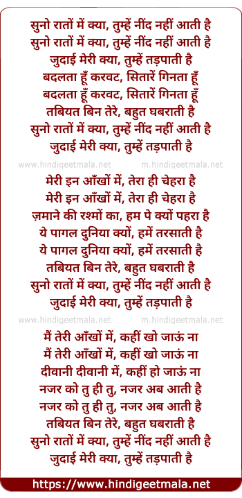 Lyrics of Suno Rato Me Kya - सुनो रातों में क्या