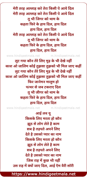 Lyrics of Meri Tarah Allah Kare Tera Kisi Pe Aaye Dil - मेरी तरह अल्लाह करे तेरा किसी पे आये दिल