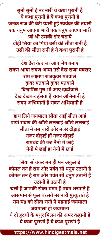 Lyrics of Suno Suno Hey Nar Nari - सुनो सुनो हे नर नारी ये कथा पुरानी है