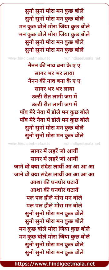 Lyrics of Suno Suno Mora Mann Kuch Bole - सुनो सुनो मोरा मन कुछ बोले