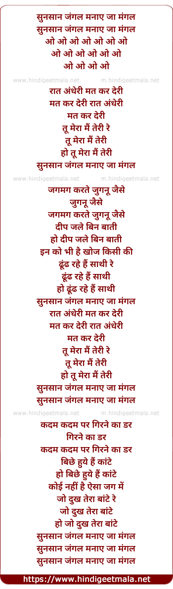 Poetic Translation - Lyrics of Sunsan Jungal Manaye Ja