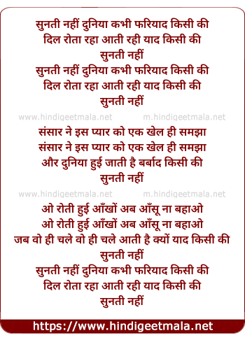 Lyrics of Sunti Nahi Duniya Kabhi Fariyad Kisi Ki - सुनती नहीं दुनिया कभी फरियाद किसी की