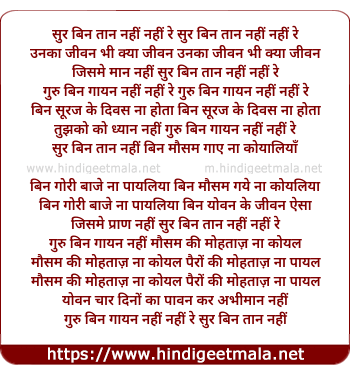 Lyrics of Sur Bin Taan Nahi Hai - सुर बिन तान नहीं है