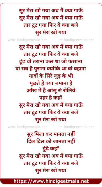 Lyrics of Sur Mera - सुर मेरा खो गया अब मैं क्या गाऊँ
