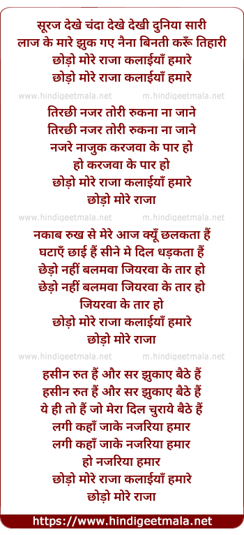 chhodo more raja kalaiya hamare