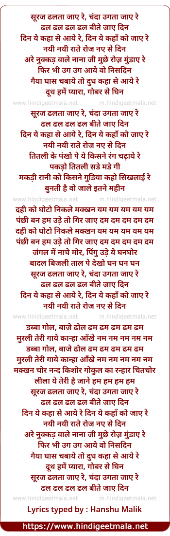 Lyrics of Suraj Dhalata Jaye Re, Chanda Ugata Jaye Re - सूरज ढलता जाए रे, चंदा उगता जाए रे