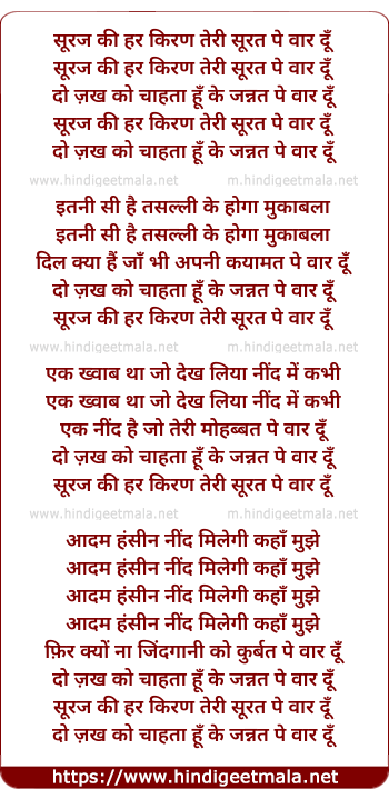 Lyrics of Suraj Ki Har Kiran - सूरज की हर किरण तेरी सूरत पे वार दूँ