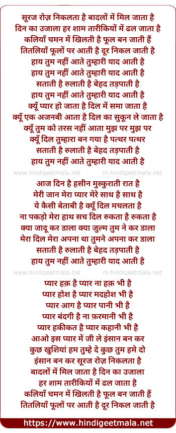 Lyrics of Suraj Roz Nikalta Hai - सूरज रोज़ निकलता है