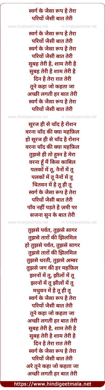 Lyrics of Swarg Ke Jaisa Roop Hai Tera - स्वर्ग के जैसा रूप है तेरा