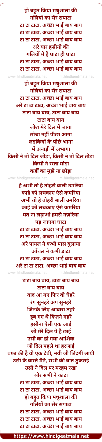 Lyrics of Ta Ta Tata - टा टा टाटा