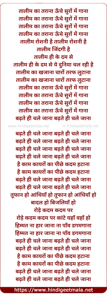 Lyrics of Taalim Ka Tarana - तालीम का तराना
