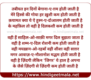 Lyrics of Tabiyat In Dinon Begaanaa E Gam Hoti Jaati Hai - तबीयत इन दिनों बेगाना-ए-ग़म होती जाती है