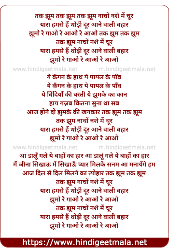 Lyrics of Tak Jhum Nacho Nashe Me Chur - तक झूम नाचों नशे में चूर