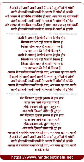 he taki o taki taki taki re, jabse tu aankho me jhanki