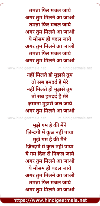 Lyrics of Tamanna Phir Machal Jaye - तमन्ना फिर मचल जाये