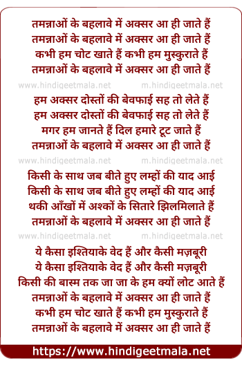 Lyrics of Tamannaaon Ke Bahlaave Mein - तमन्नाओं के बहलावे में अक्सर आ ही जाते हैं