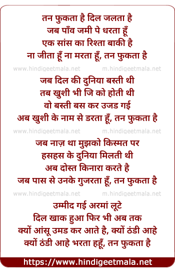 Lyrics of Tan Phunkta Hai Dil Jalta Hai - तन फुकता है दिल जलता है