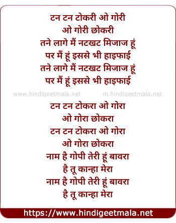 Lyrics of Tan Tan Tokri - टन टन टोकरी