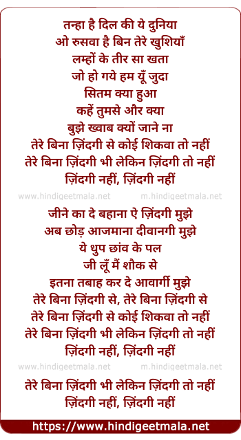 tere bina jindgi se, tere bina jindgi se