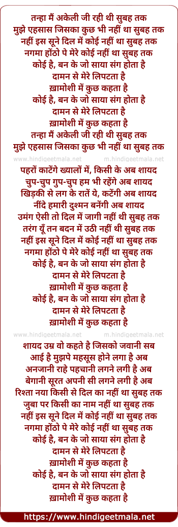Lyrics of Tanha Koi Nahi - तन्हा कोई नहीं
