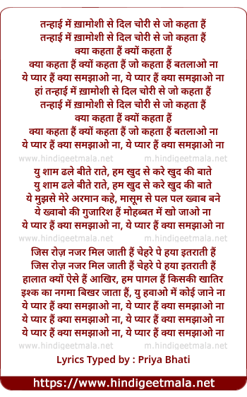 Lyrics of Tanhai Me Khamoshi Se Dil Chori Se Jo Kahta Hai - तन्हाई में ख़ामोशी से दिल चोरी से जो कहता हैं