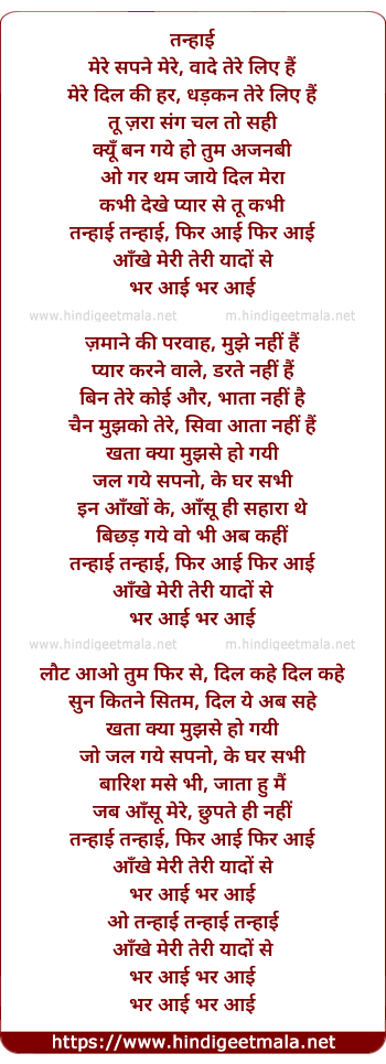 Poetic Translation - Lyrics of Tanhai Tanhai - तन्हाई