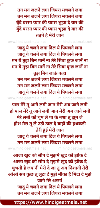 Lyrics of Tann Mann Jalne Laga - तन मन जलने लगा