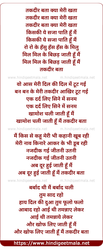 Lyrics of Taqdir Bata Kya Meri Khata - तकदीर बता क्या मेरी खता