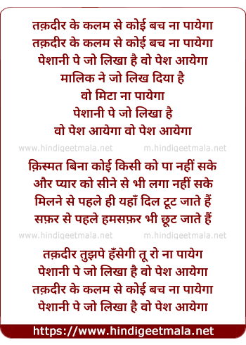 Lyrics of Taqdir Ki Kalam Se - तक़दीर की कलम से